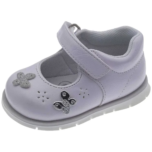- Ballerina Primi Passi Da Bambina In Materiale Perlato Con Farfalle Argento, Regolabile Con Velcro