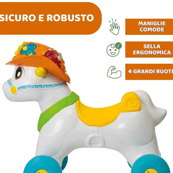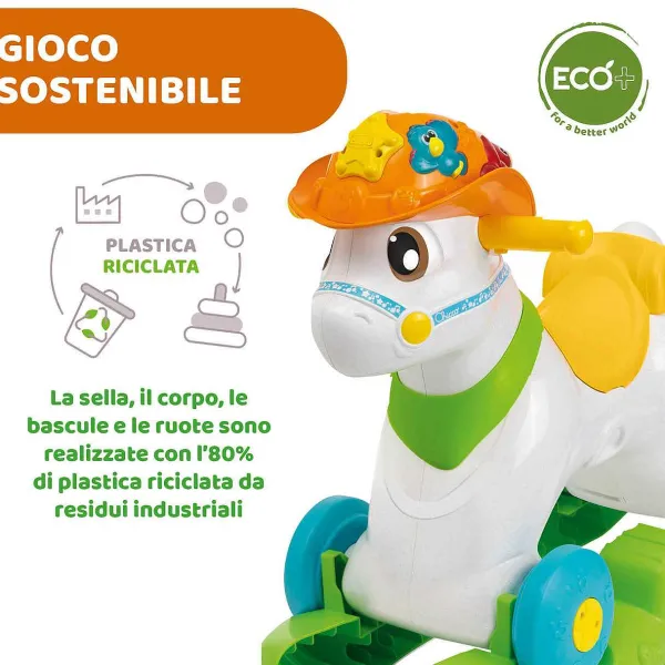 - Corpo E Sellino, Base A Dondolo, Ruote Sono Realizzati Per L’80% Di Plastica Riciclata, Nel Pieno Rispetto Dell’Ambiente E Rispettando Gli Alti Standard Qualitativi E Di Sicurezza Di Tutti I Giocattoli Chicco.