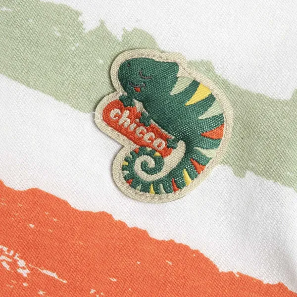 - Maglietta Manica Corta Con Stampa Righe Irregolari Ed Etichetta Rigonfia Camaleonte