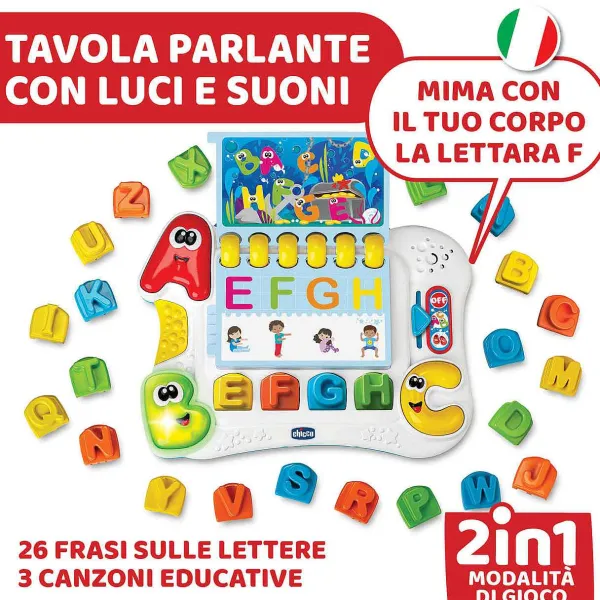 - Lettere In Movimento Di Chicco È Un Gioco Parlante Per La Pre-Lettura Con 2 Modalità Di Gioco Per Insegnare Al Bambino Le Lettere Dell’Alfabeto, La Loro Pronuncia E Come Riprodurle Usando Il Proprio Corpo