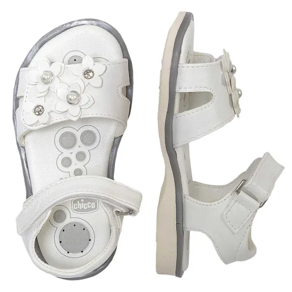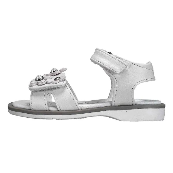 - Sandalo Da Bambina Con Applicazione Di Fiori Perle E Strass, Con Doppia Regolazione Velcro