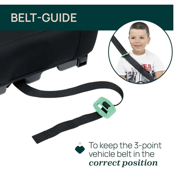 - Guida Cintura Diagonale Regolabile Incluso Per Mantenere In Posizione La Cintura A 3 Punti Dell’Auto.