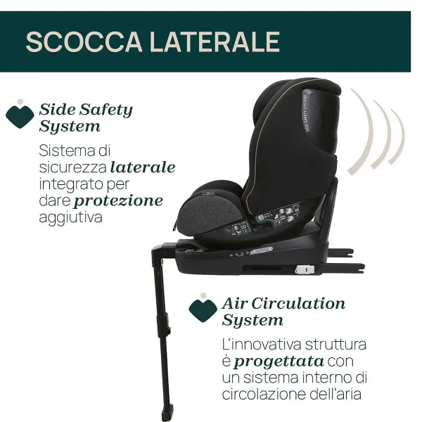 - La Sicurezza È Garantita Grazie Al Sistema Di Installazione Isofix Con Support Leg Fino A 105 Cm E Al Side Safety System Integrato Che Protegge In Caso Di Impatti Laterali.