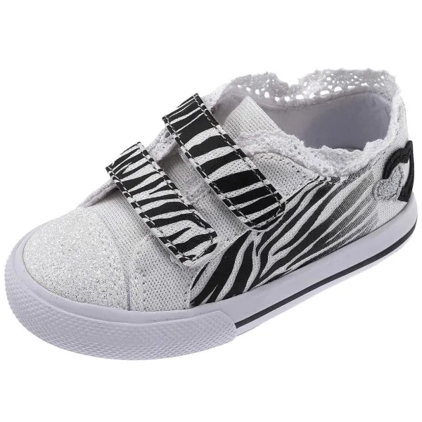 - Sneakers Da Bambina In Tessuto A Stampa Animalier Con Bordo In Pizzo, Tomaia Arricchita Da Applicazioni. Regolabile Con Doppio Velcro