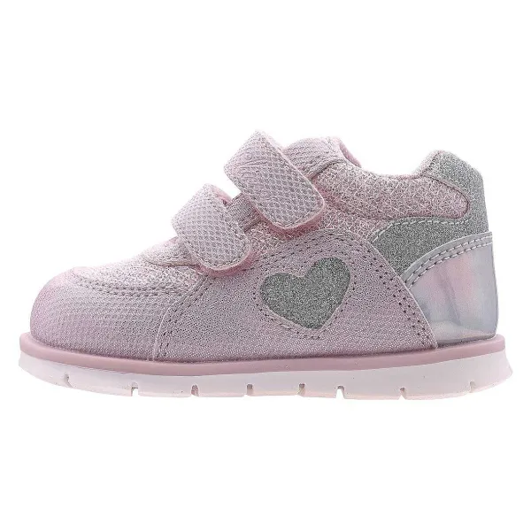 - Sneakers Primi Passi Da Bambina In Materiale Laminato Stampato Con Inserti In Tessuto Glitter. Cuore E Parte Posteriore In Materiale Glitter. Regolabile Con Doppio Velcro