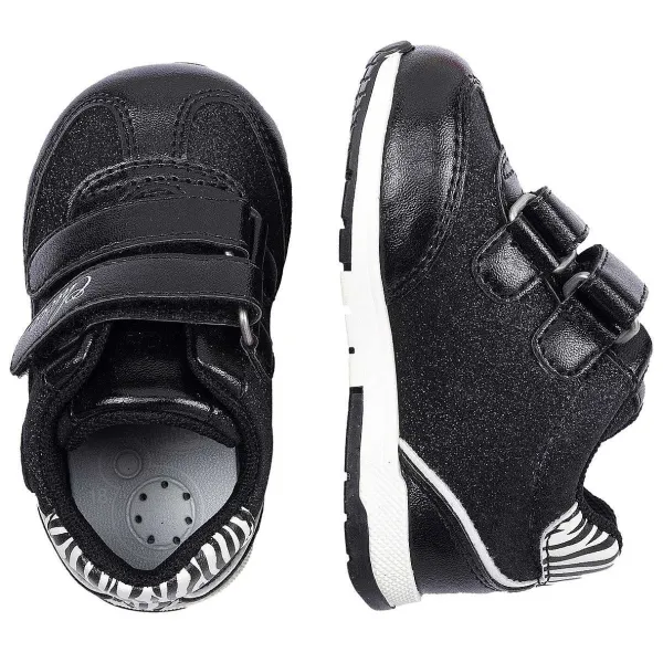 - Sneakers Primi Passi Da Bambina Con Doppio Velcro E Cuore Laterale Arricchito Da Borchie E Strass, Dettaglio Posteriore Animalier