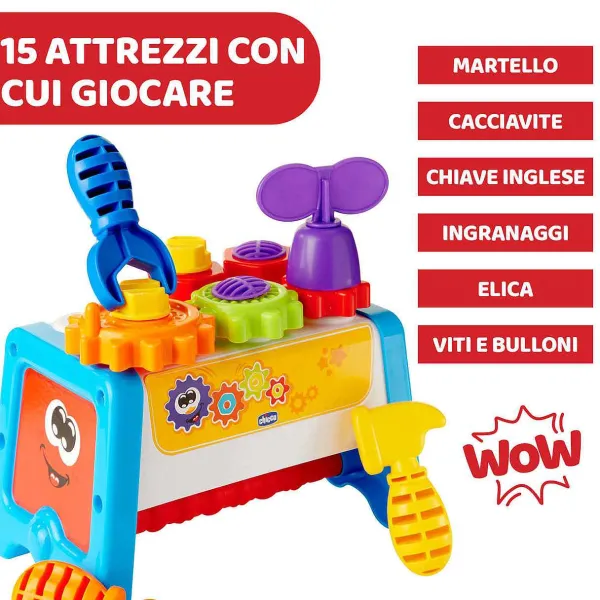 - Include 15 Pezzi Diversi Come Martello, Cacciavite, Chiave Inglese, Viti, Ingranaggi, Bulloni, Chiodi, Elica Con Cui Giocare