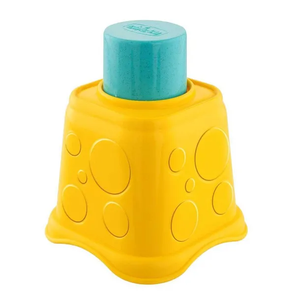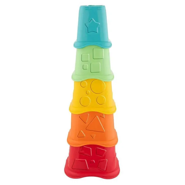 - Il Bambino Si Diverte A Impilare Le Cinque Tazze Di Dimensioni Decrescenti Per Costruire Una Torre Colorata Oppure Può Infilare Le Cinque Forme Geometriche Nei Fori Corrispondenti Dentro Ogni Tazza.