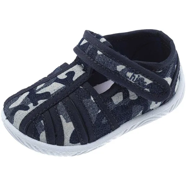 - Pantofola Da Bambino Ad Uso Interno/Esterno Casa In Tessuto Stampato Effetto Camouflage. Regolabile Con Velcro