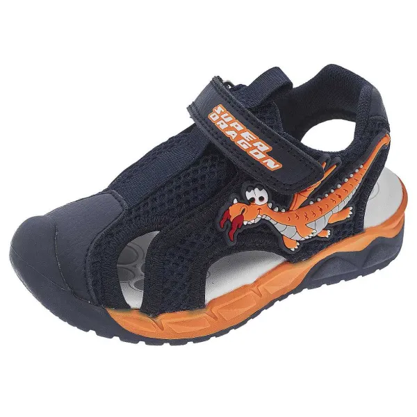 - Sandalo Da Bambino A Punta Chiusa In Tessuto Tecnico Con Drago E Stampa Su Velcro