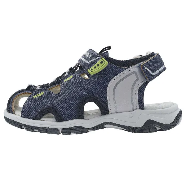 - Sandalo Da Bambino A Punta Chiusa Dal Look Sportivo In Materiale Effetto Denim Con Inserti In Tessuto Tecnico, Regolabile Con Doppio Velcro