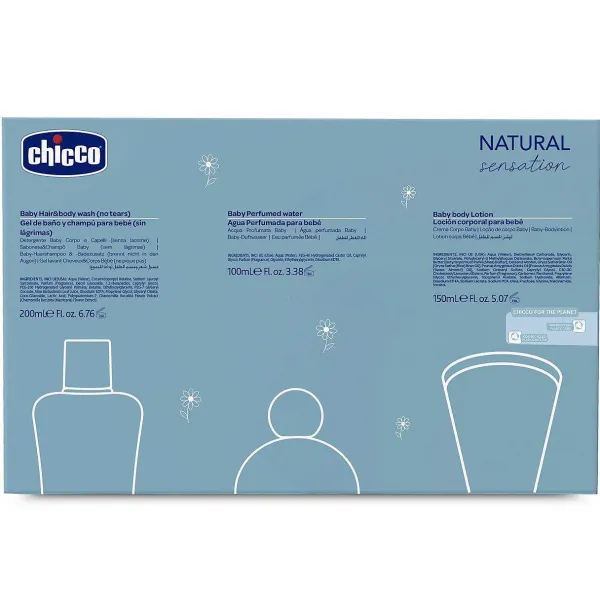 - Contiene Tre Prodotti Cosmetici Natural Sensation : Detergente Baby Corpo&Capelli 200Ml, Crema Corpo Baby 150Ml E Acqua Profumata 100Ml.