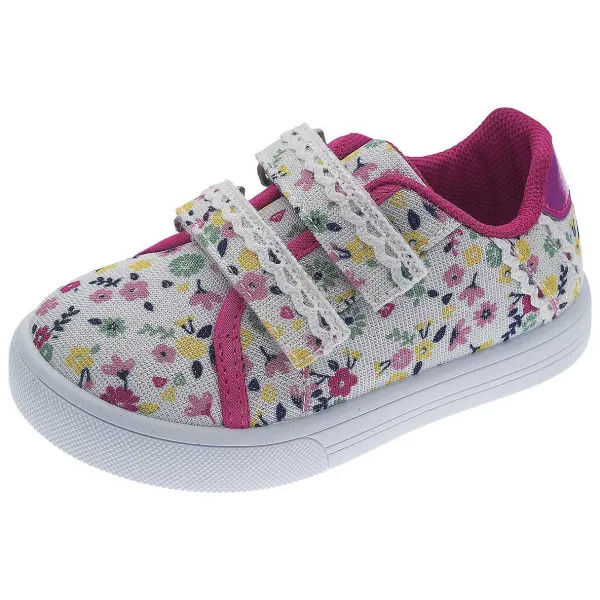 - Sneakers Doppio Velcro Da Bambina In Tessuto Glitter Con Stampa A Fiori E Dettagli In Pizzo