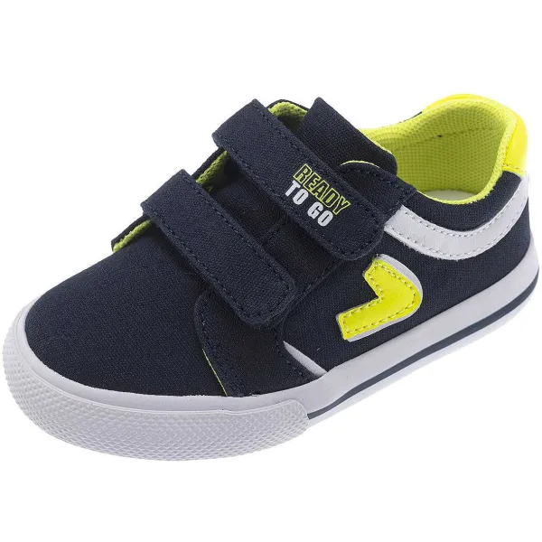 - Sneakers Da Bambino In Tessuto Con Doppio Velcro, Dettaglio Laterale E Fodera In Colore Giallo Fluo