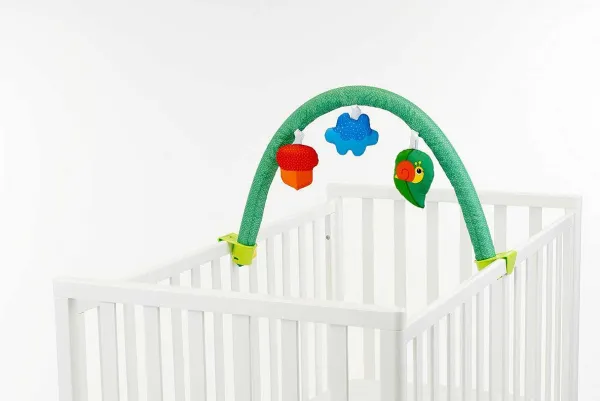 - L’Arco In Tessuto Può Essere Staccato Dal Materassino E Agganciato Facilmente Al Lettino O Alla Culla Del Bambino, Grazie Ad Un Comodo Sistema Di Aggancio In Plastica
